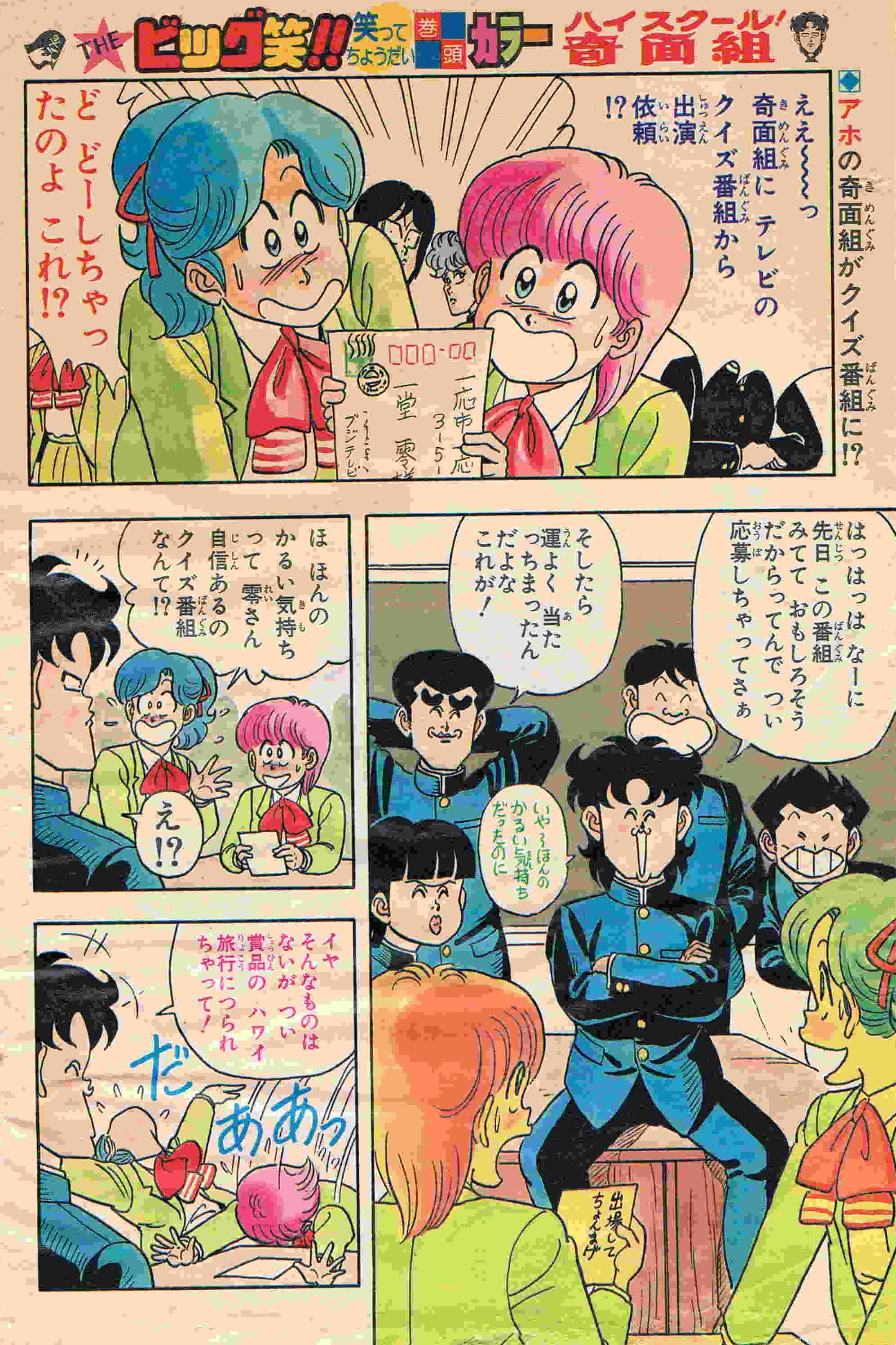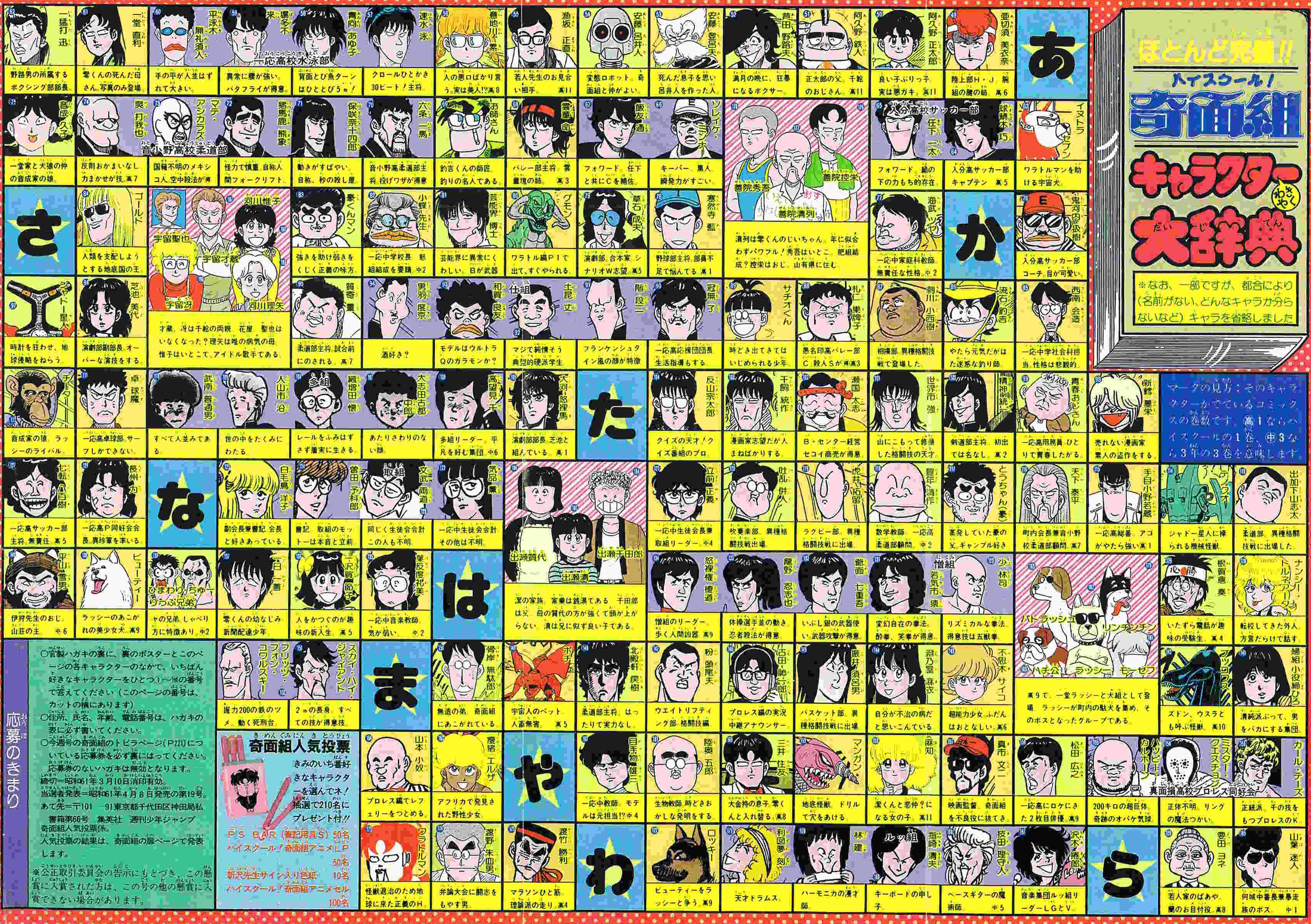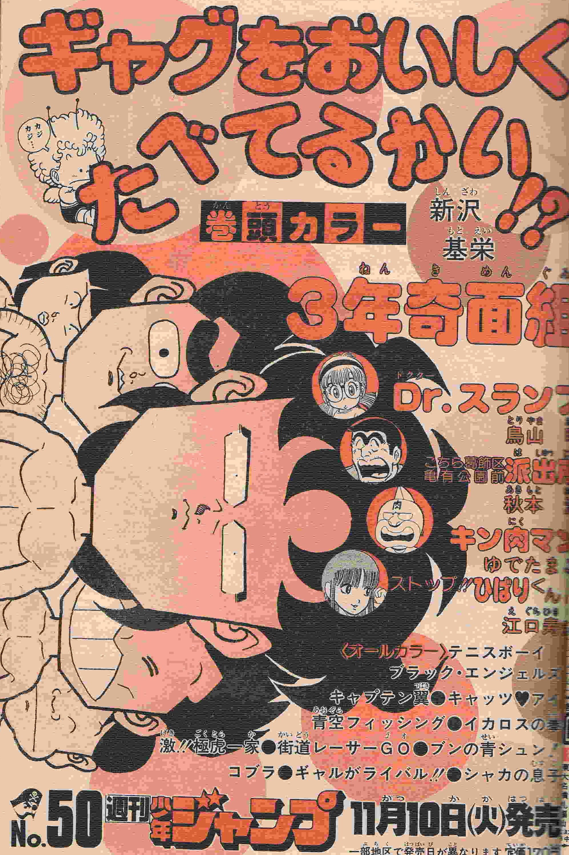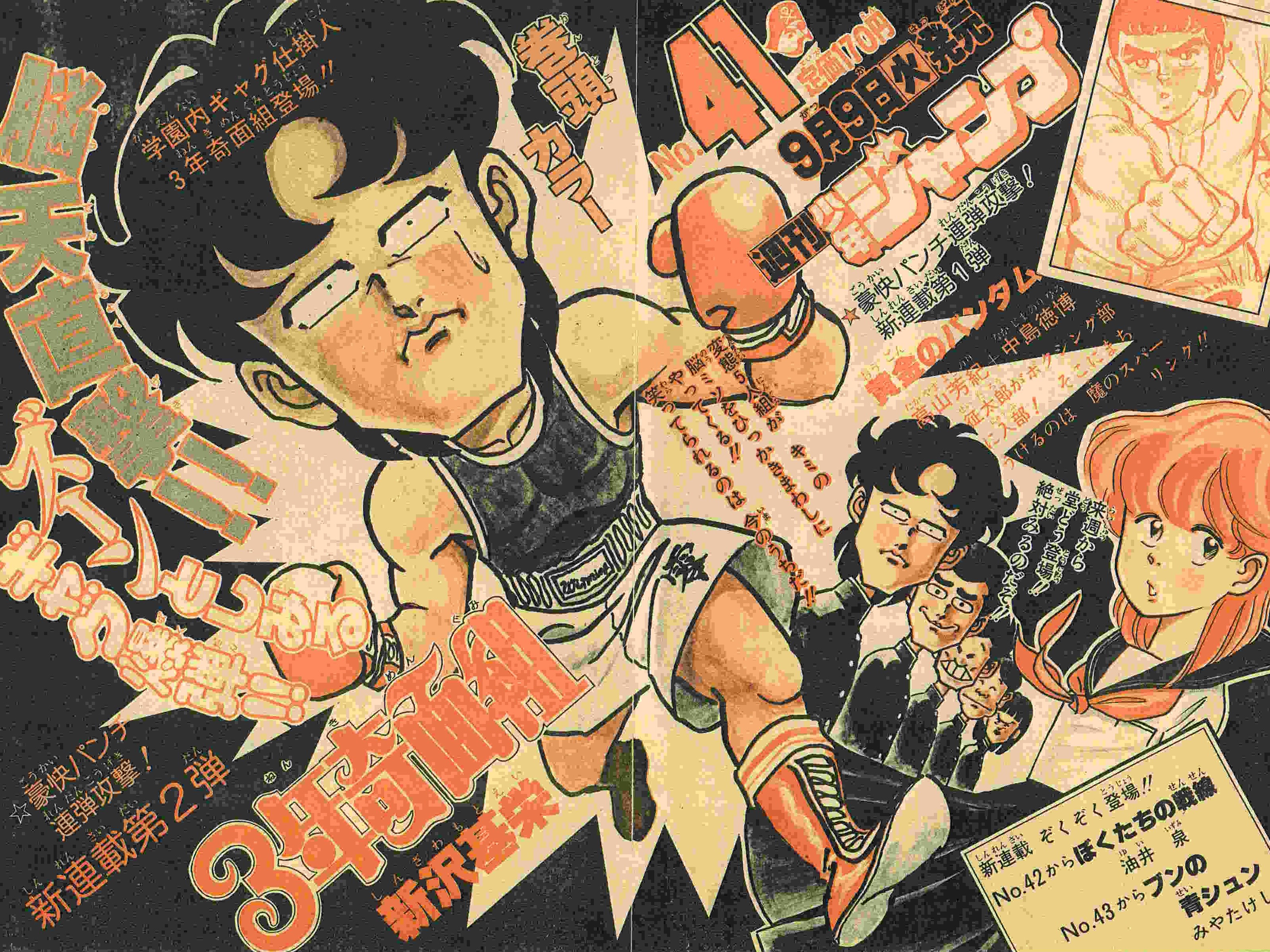 | 41号 | 奇面組登場 HOW MANY変な顔!? | 初掲載からいきなり、連載ときまり内心ヒヤヒヤ本心へらへら!? | 巻頭カラー4P (1) (2) (3) (4) |