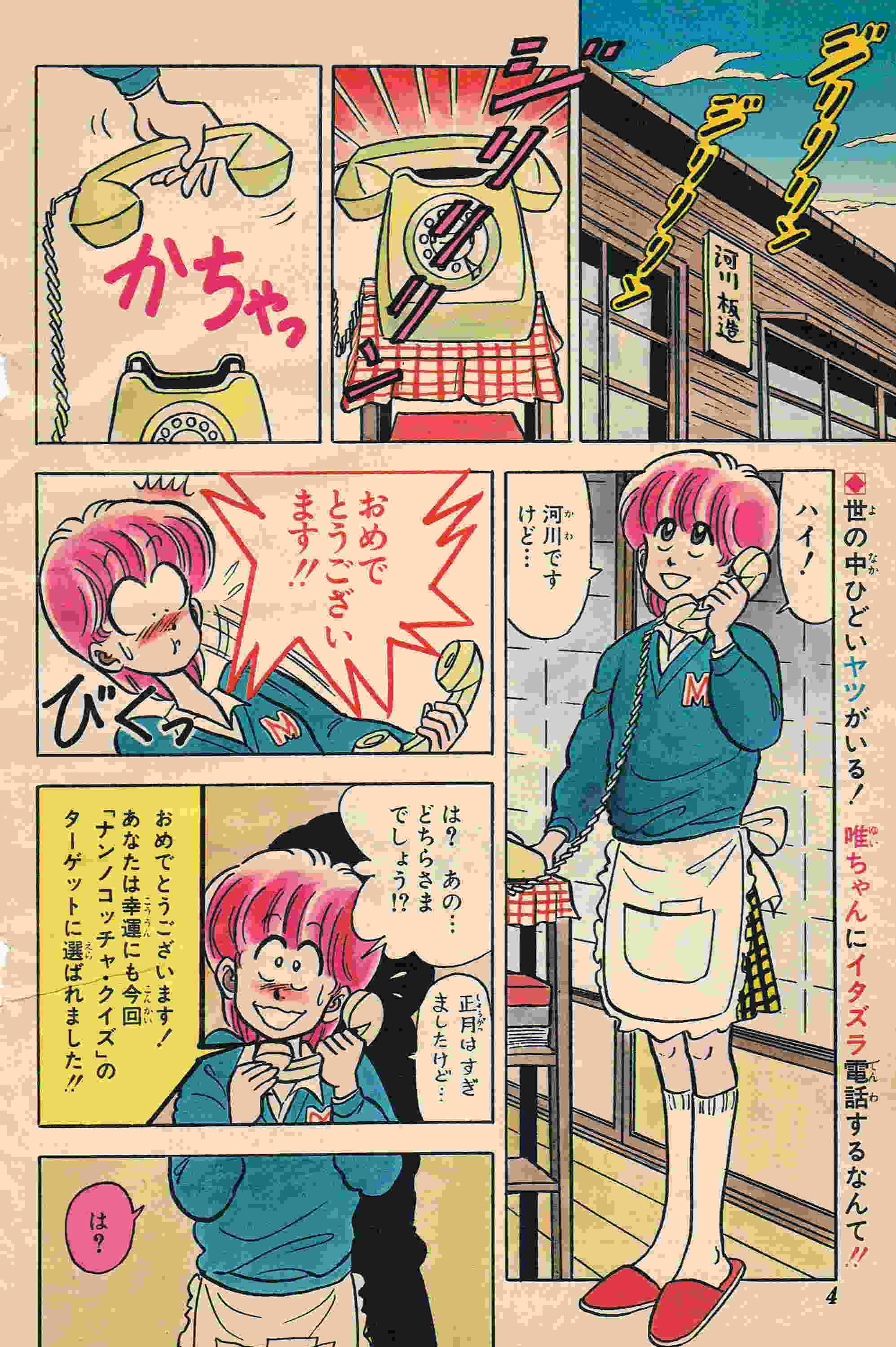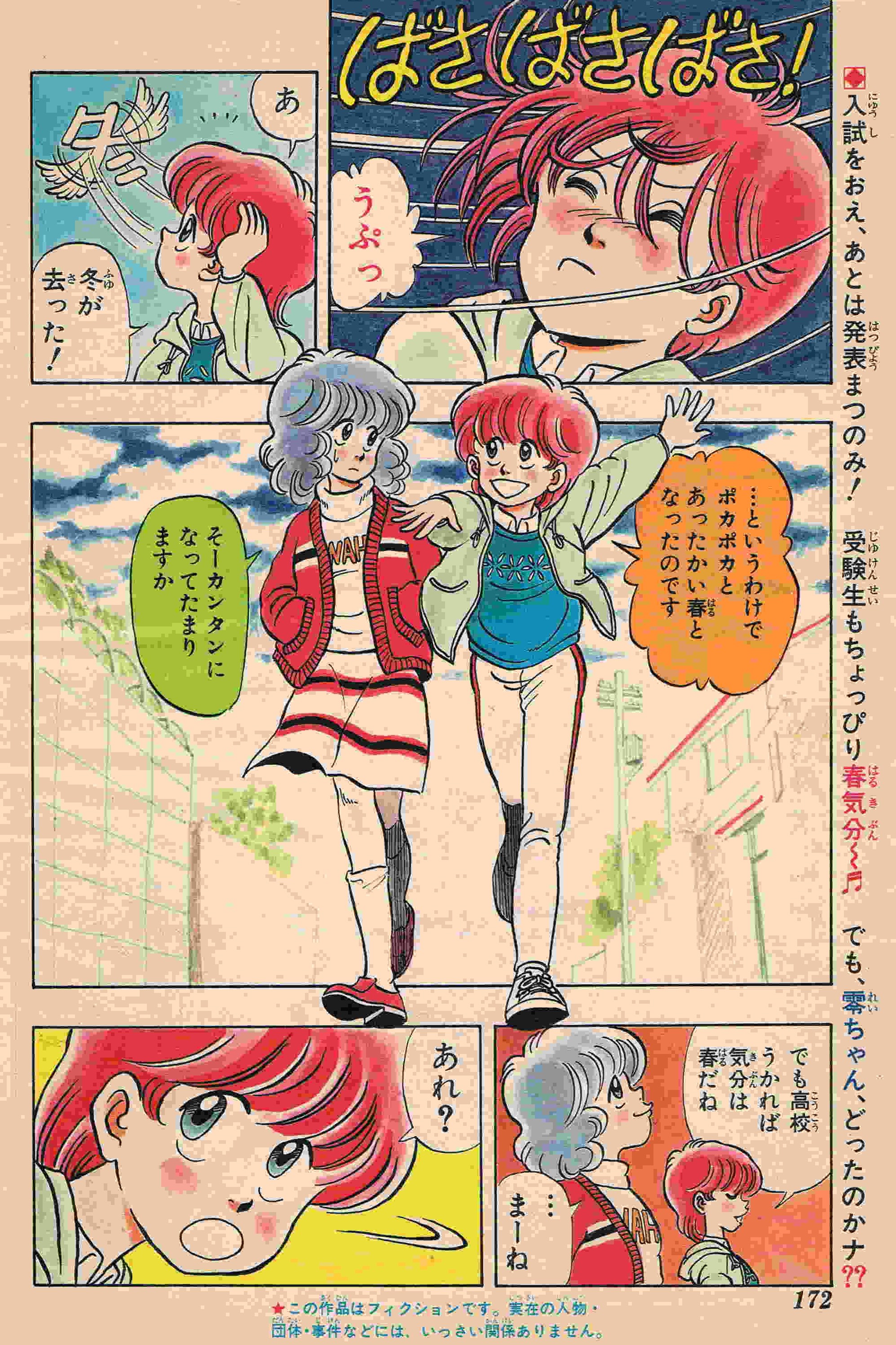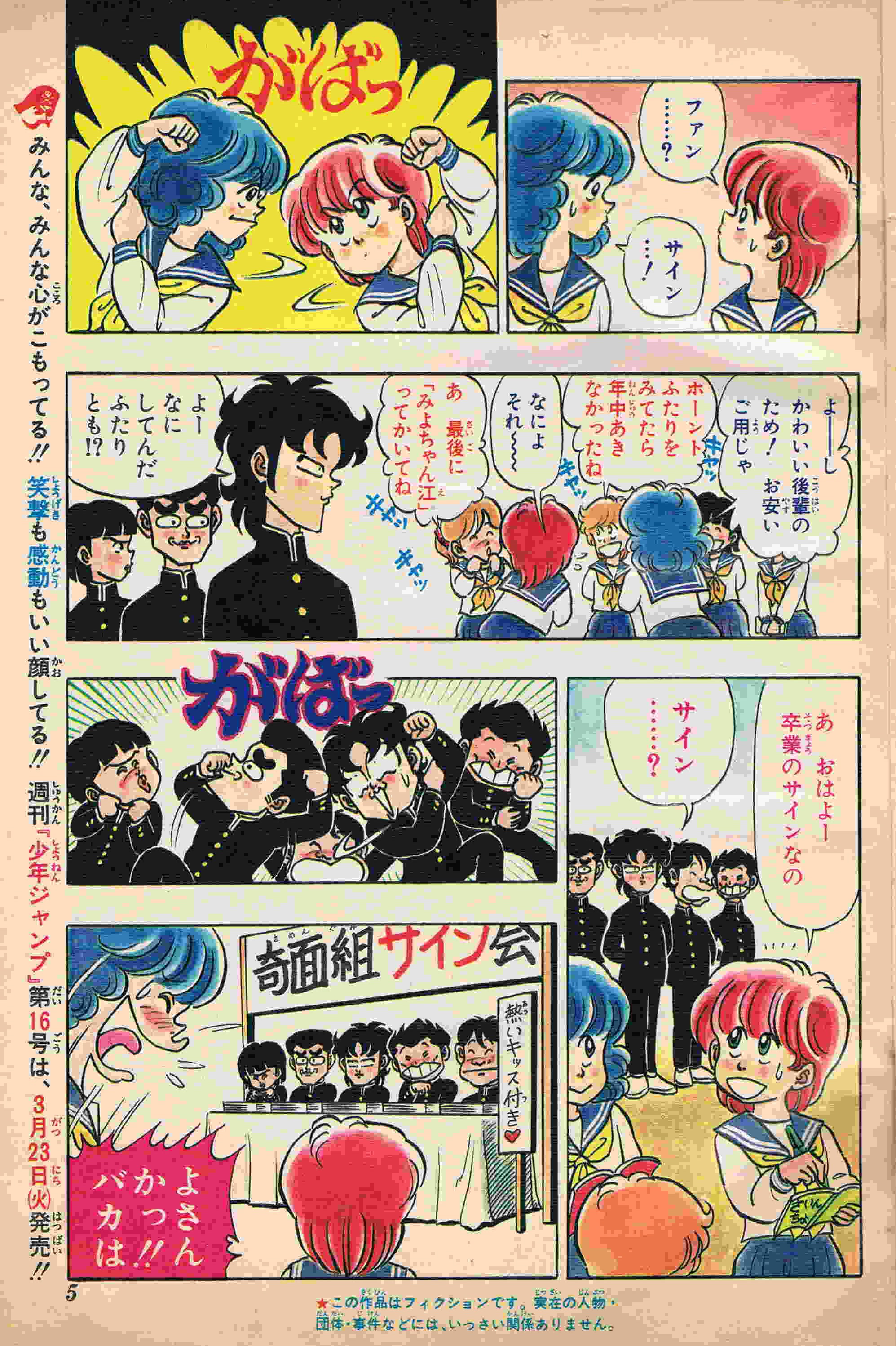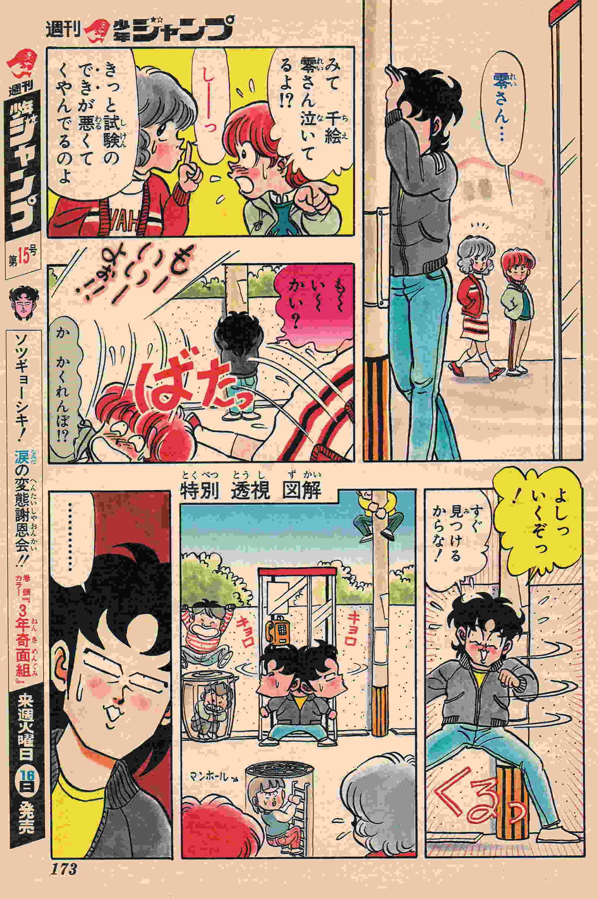 | 14号 | 合格発表「名前がない!?」 | 洗たく屋の名札をつけたままで、電車内で赤面!春ですな~!! | 中綴じカラー3P (1) (2) (3) 次号予告 |