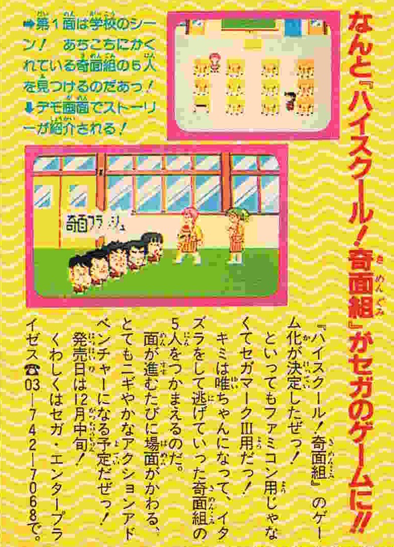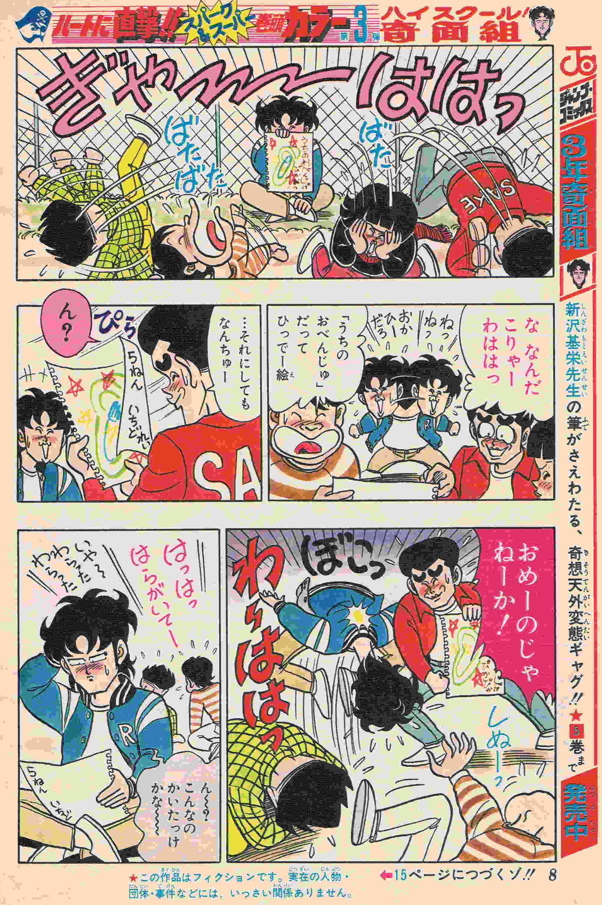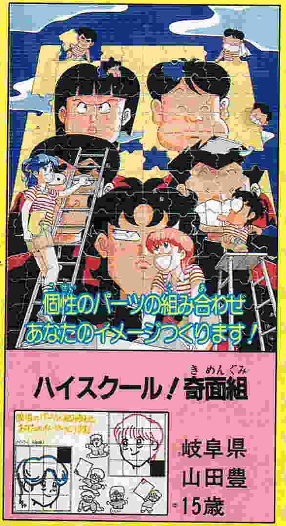 | 15号 | さらば一応中 | 僕が卒業した高校が廃校になってしまった!サビシィィー!! | 表紙に奇面組のカラーイラスト少々 巻頭カラー (1) (2) (3) (4) オール2色カラー |