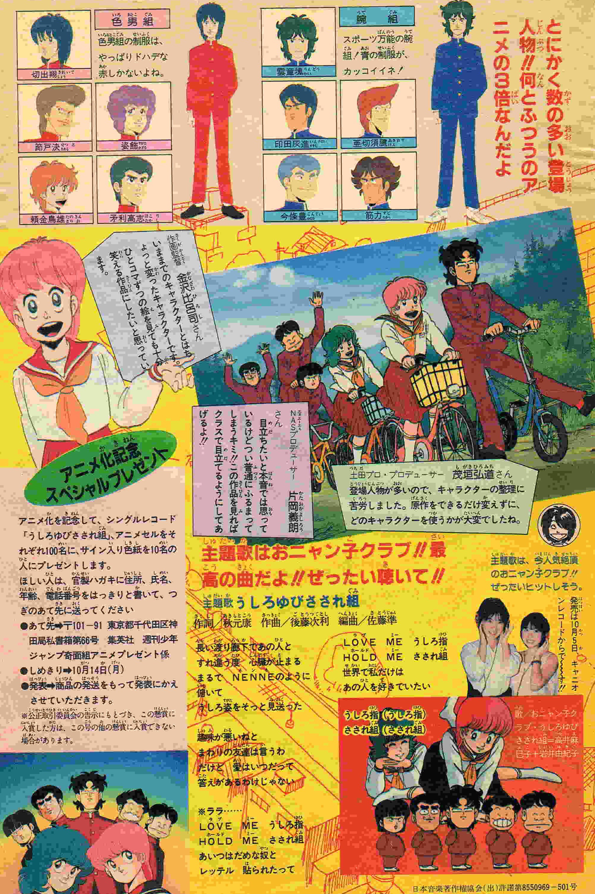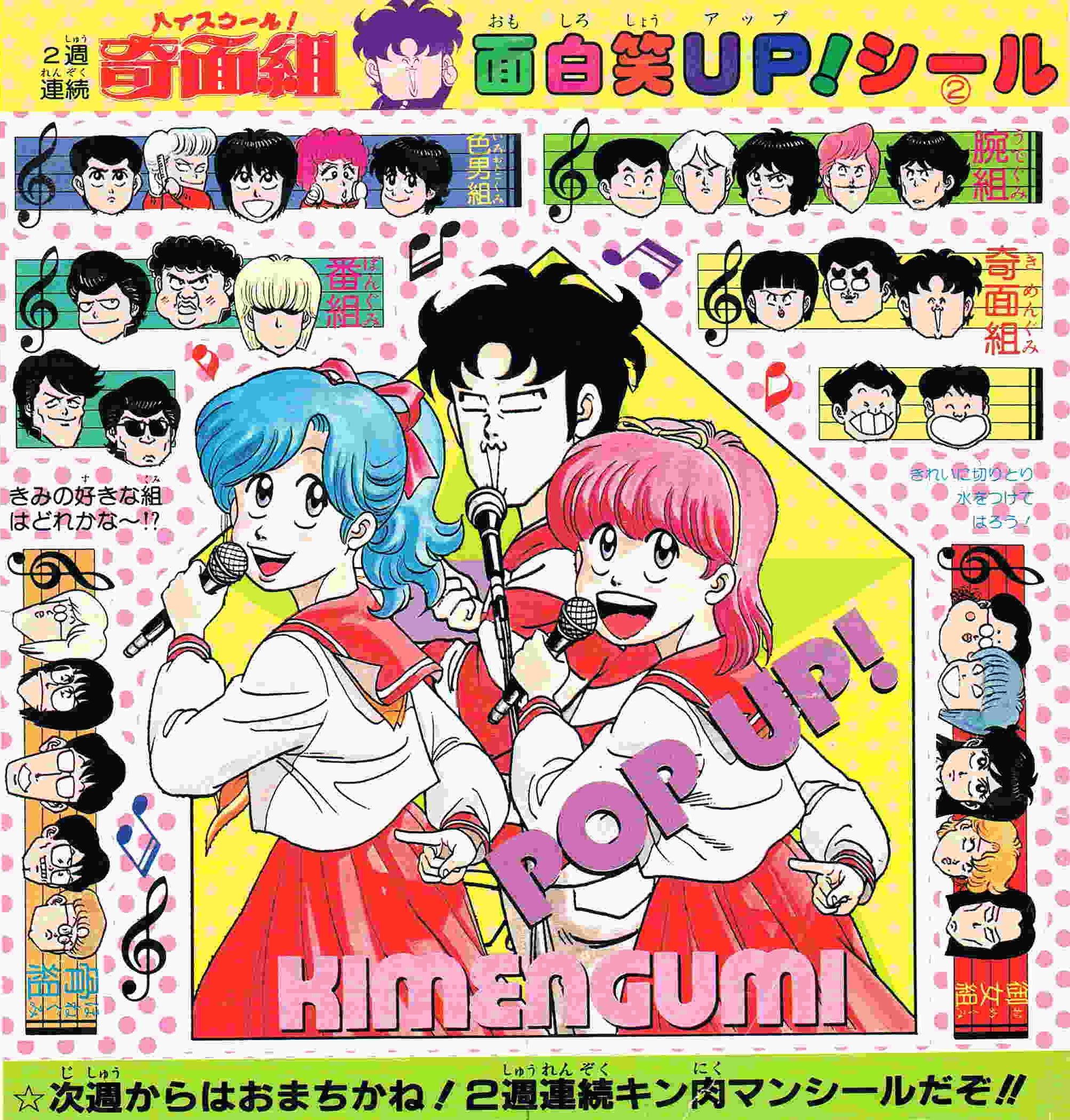 | 17号 | だから色男組 | ポスターどうでした?おニャン子と奇面組を組み合わせるのに四苦八苦・・・!! | おニャン子バナナんボーポスター (1) (2) 奇面組面白笑UPシールその1 |