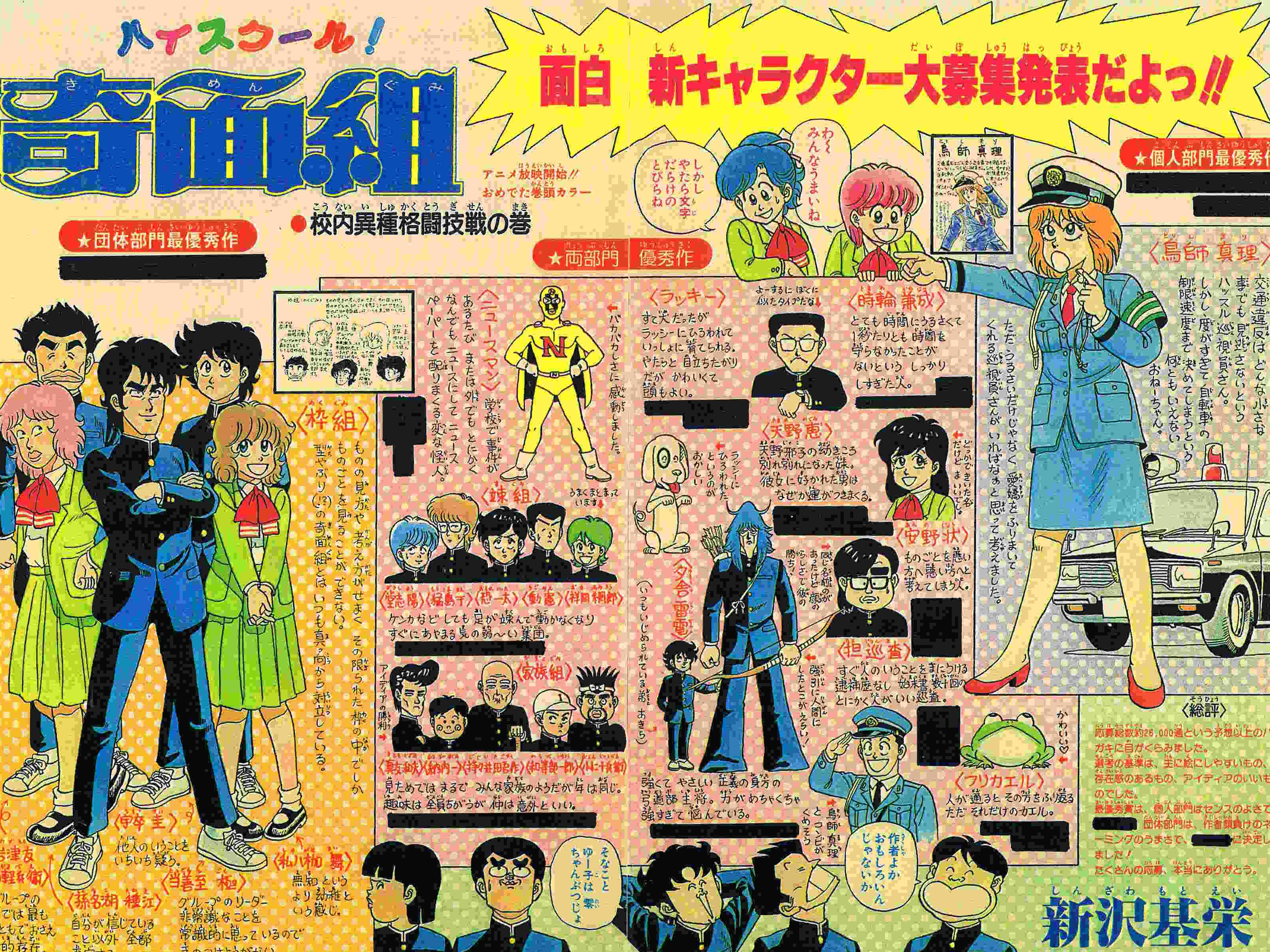 面白キャラクター発表 巻頭カラー4P (1) (2) オール2色カラー |