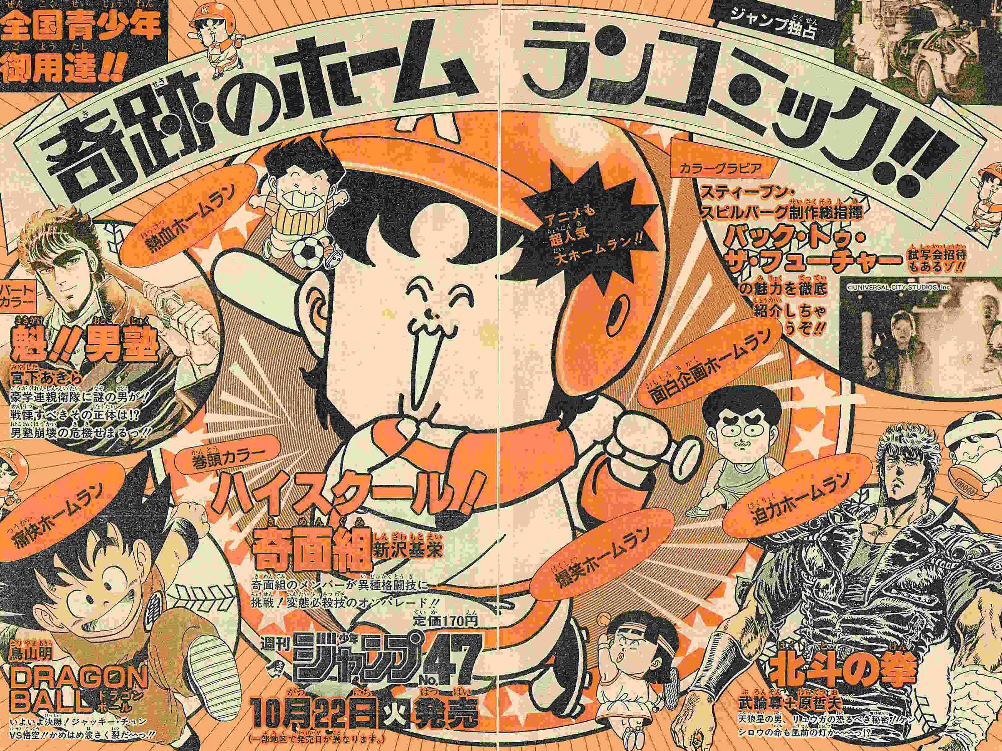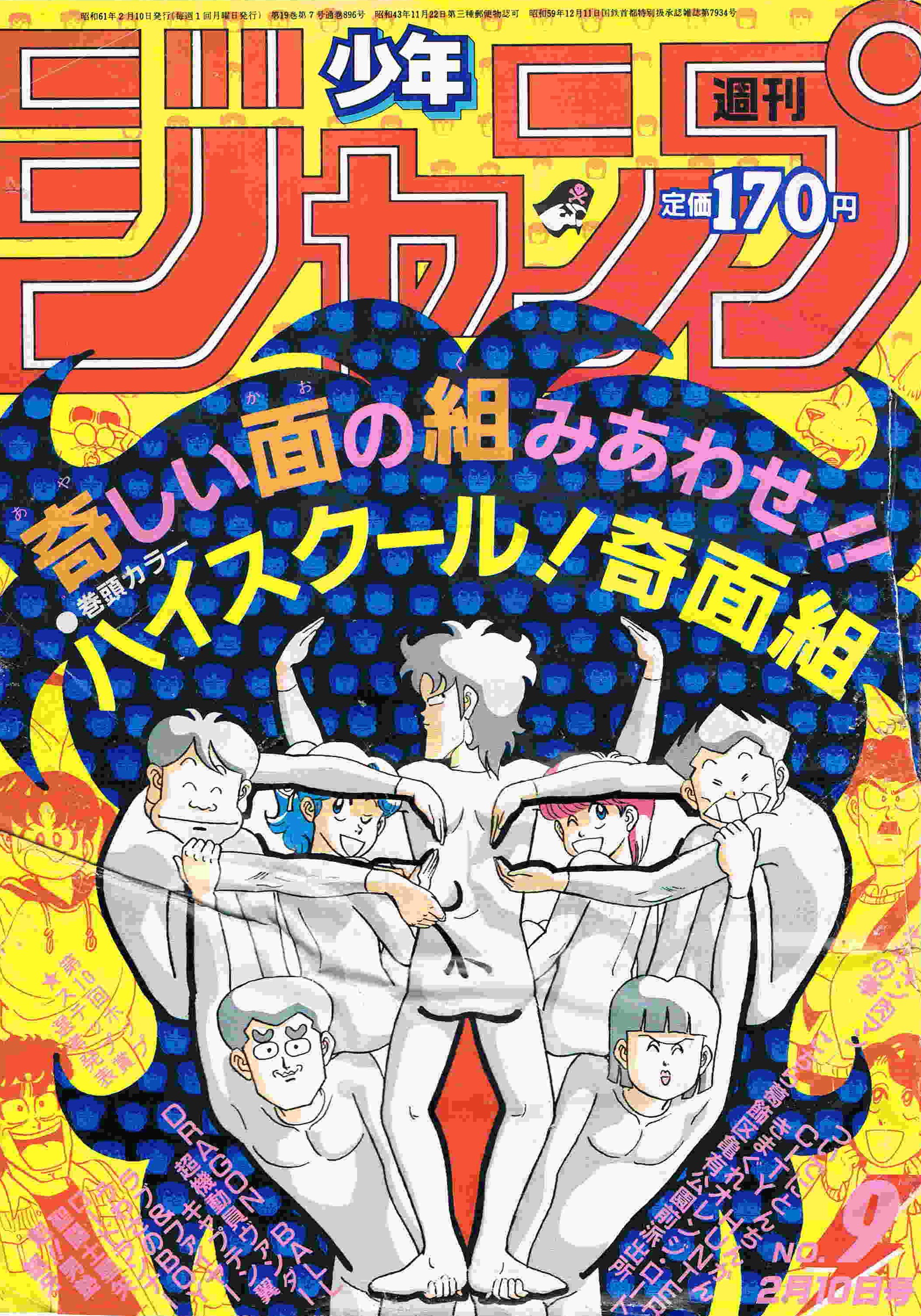 1986年 奇面組アニメ絶好調!平均視聴率も20%を超えてたらしい。 ジャンプではポスター系統を多用する傾向だった。