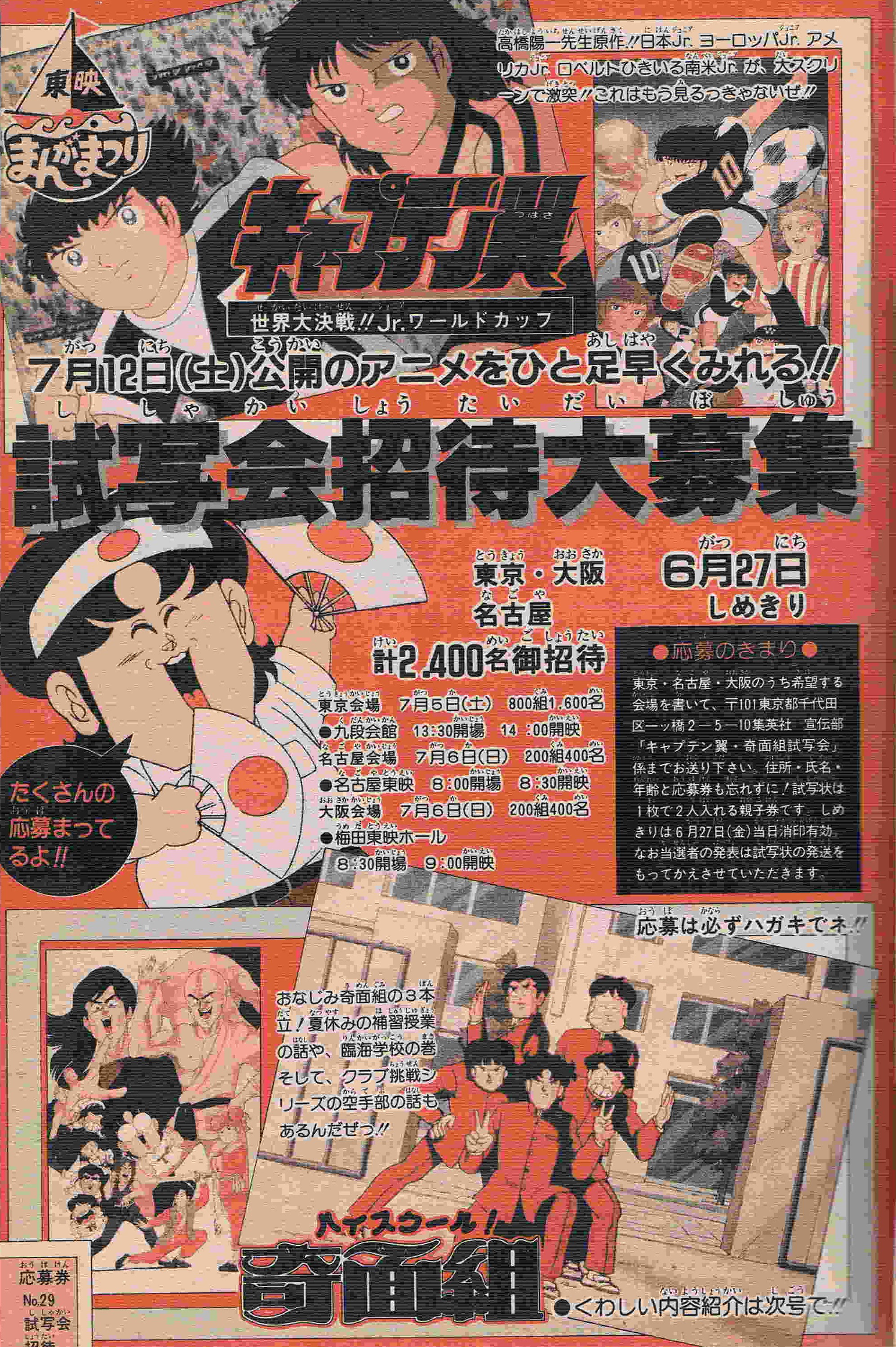| 30号 | レギュラー決定 | 7月12日(土)から東映まんがまつりで、奇面組の劇場用アニメが公開されます! 楽しさ満点みんなみてねっ!! |
