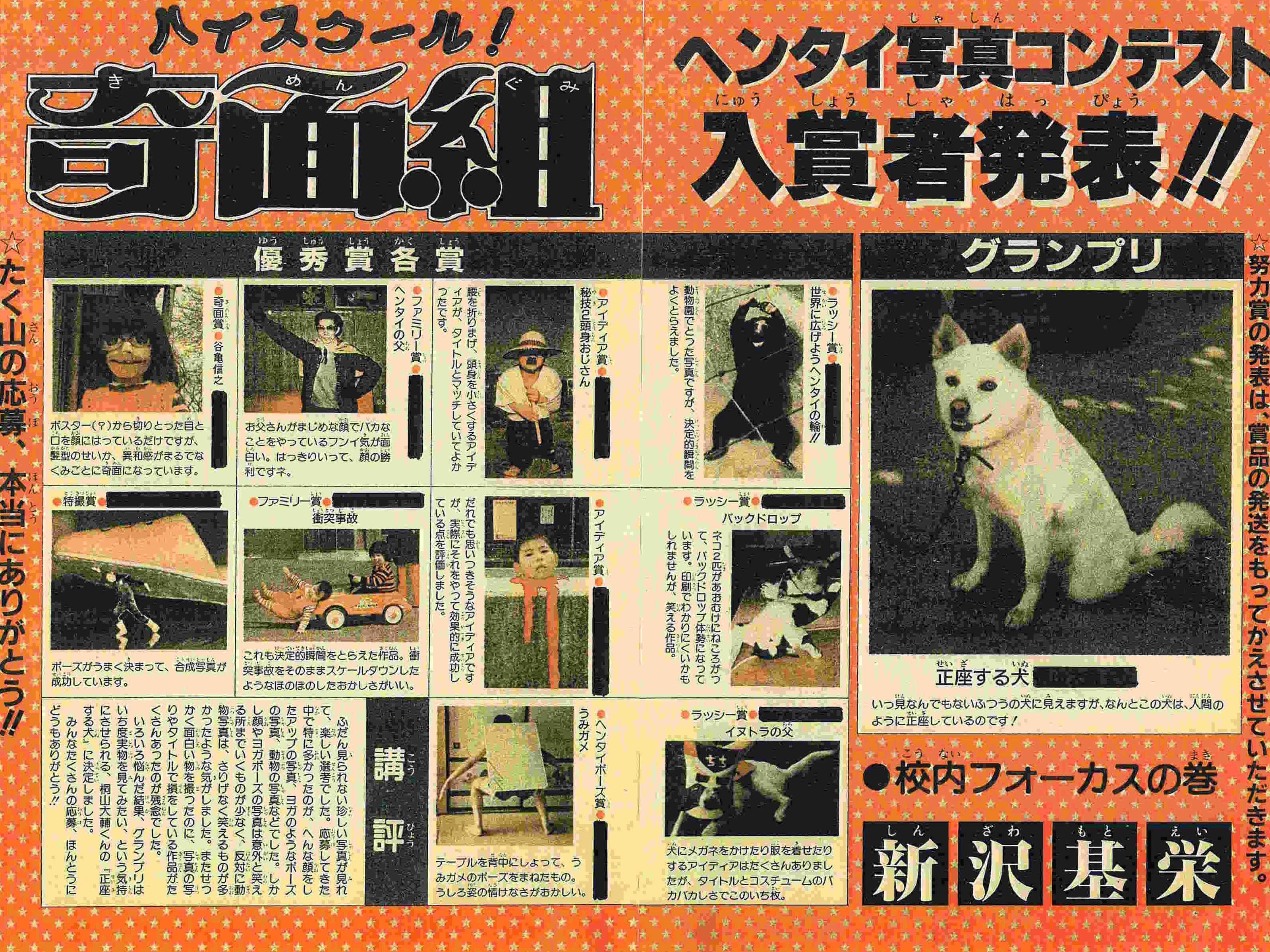 | 46号 | 校内フォーカス | コピーの機械がこわれてアタフタ!しめきりまぎわで、あせりまくった!! | 変態写真コンテスト発表! |