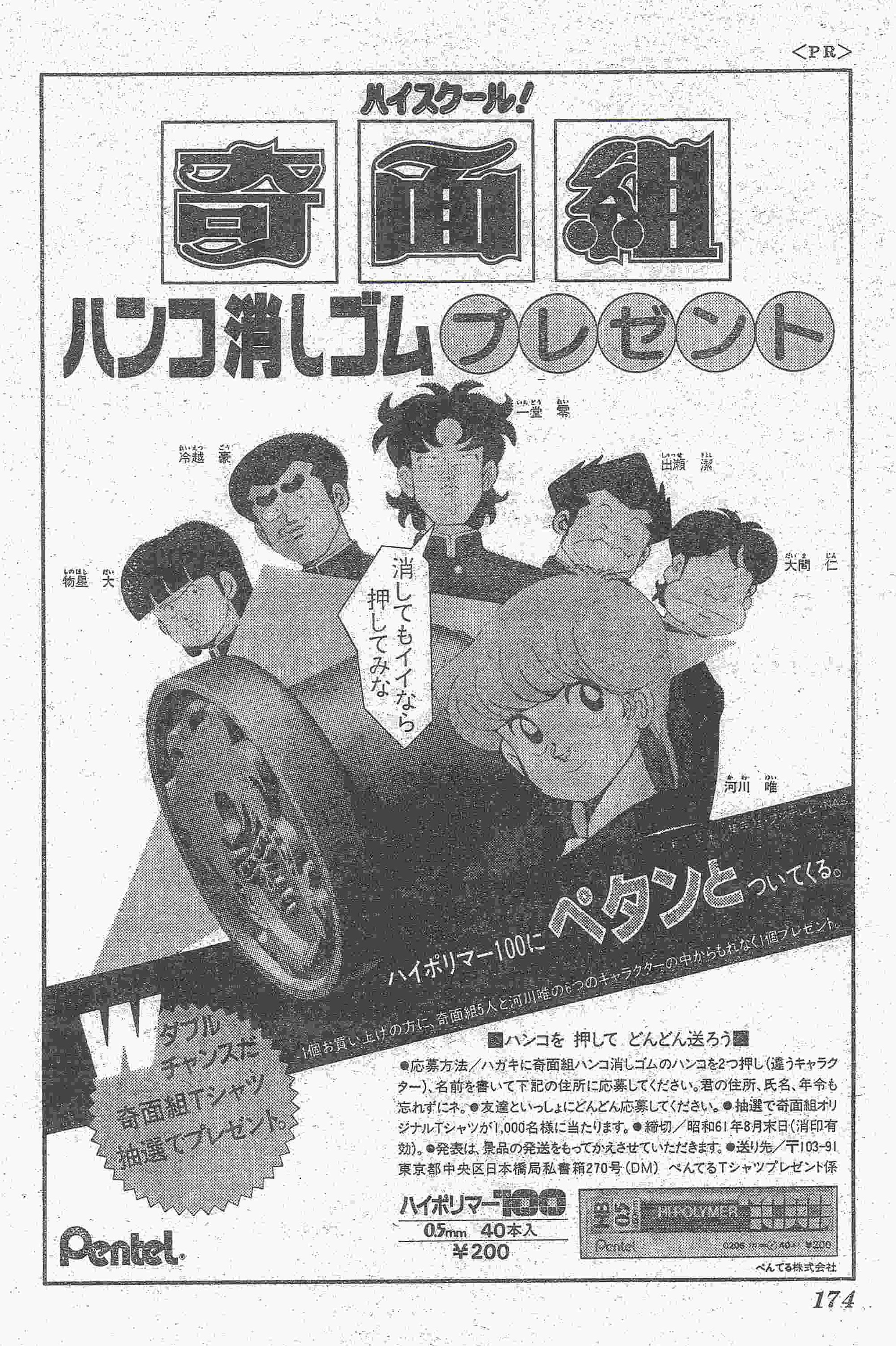 | ?号 | 奇面組消しゴムプレゼント ローソンの広告 巨弾ダブルポスター後ろ指指され組 作者4コマ 未収録版豪くんマン |