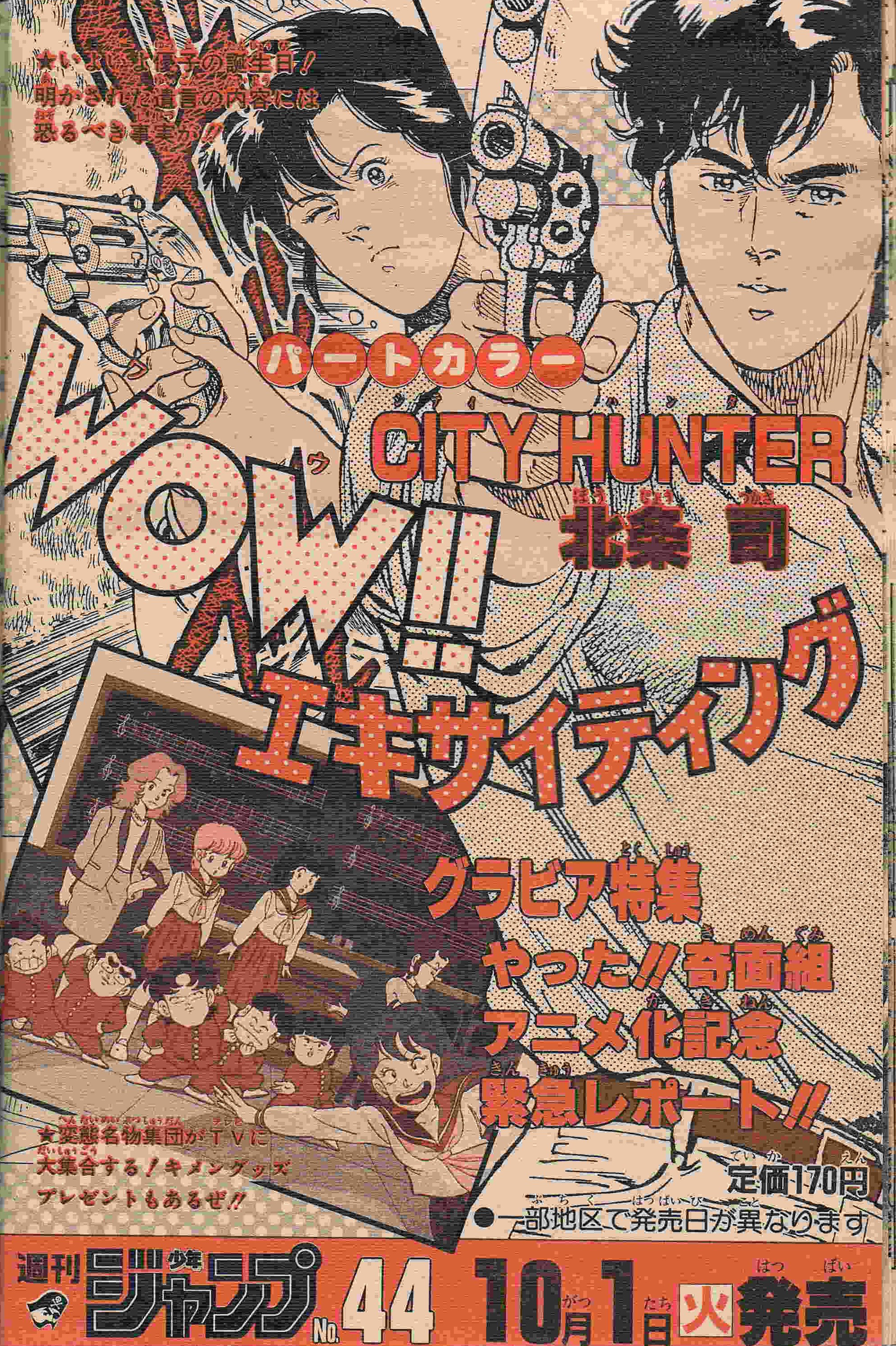 | 44号 | 色男組登場 魅力の対決!? | 今回の連載で、ボクの名が、一躍、親戚中にしれわたってしまった | 表紙に奇面組のカラーイラスト少々 |