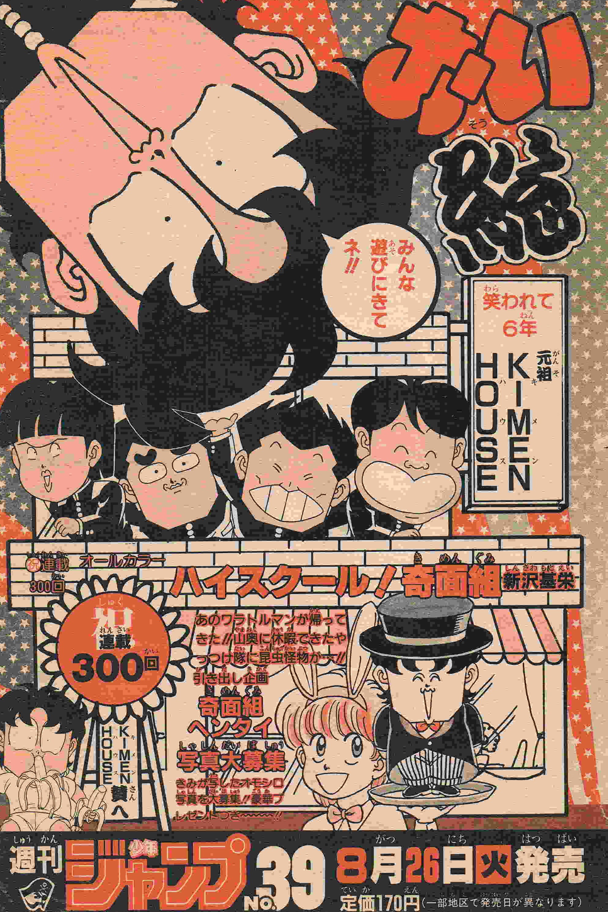 | 39号 | 変態防衛軍出動 | 新アシスタントMくん加入。ますますパワーアップでがんばるョ | 表紙に奇面組のカラーイラスト少々 |